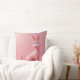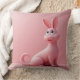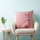 Un coussin rose vif avec un lapin rose gravé dessus.
