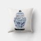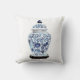 Ce coussin comporte un pot bleu et blanc classique de gingembre de porcelaine basé sur un objet façonné chinois antique. D'une gouache originale/encrez la peinture par l'artiste Anne Harwell