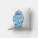 Ce coussin comporte un pot bleu et blanc classique de gingembre de porcelaine basé sur un objet façonné chinois antique. D'une gouache originale/encrez la peinture par l'artiste Anne Harwell.