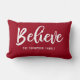 Croire écriture manuscrite | Oreiller de Jeu de Vacances en rouge. Design moderne de typographie de ferme par Blackberry Boulevard "Believe" écrit en caractères blancs sur un arrière - plan de couleur rouge solide. Personnalisez-le avec votre nom de famille. Autres couleurs disponibles en magasin. Un coussin parfait accent pour votre décor de maison de vacances.