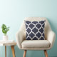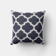 Coussin marocain de treillis de bleu marine. Fait dans les carreaux décoratifs des Etats-Unis avec un motif géométrique de quatrefoil dans des couleurs contemporaines.