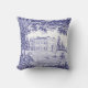 Décor champêtre français bleu toile coussin avec une belle scène de jardin.
