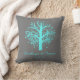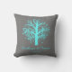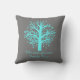 Mariage Keepsaké Coussin, arbre généalogique; Aqua/Turquoise sur Grey, avec Silhouette d'Aqua Coloured Tree sur coussin noir, ajouter les noms des couples et la date du Mariage sur le devant du coussin; Back of the coussin dit "le début d'un nouvel arbre généalogique" (ou modifier le texte comme vous voulez)