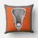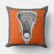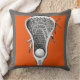 Joueur de crosse ou coussin d'entraîneur avec design laxiste bâton et balle sur arrière - plan orange.