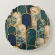 Ajoutez une touche douce et luxueuse à votre espace avec cet élégant coussin rond décoratif présentant un magnifique design en arche florale sarcelle et or. Inspiré par l'esthétique intemporelle de l'Art déco, cette pièce mélange des tons sarcelle foncé et marine avec des accents beige doux et or raffiné pour un look sophistiqué et apaisant.