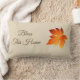 Ce coussin décoratif est présenté dans une couleur neutre beige avec une impression de texte 'Bénissez cette maison' et un accent de feuille d'automne jolie.