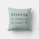 Les coordonnées de longitude et de latitude d'Atlanta dans des polices en détresse donnent à ce jeté un look urbain moderne