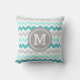Les rayures turquoises lumineuses élégantes et modernes de bleu de turquoise, grises et blanches de chevron de zigzags modèlent le carreau décoratif de monogramme fait sur commande. Entièrement personnalisable, ajoutez votre propre initiale pour un article à la maison véritablement unique de décor.