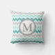 Les rayures turquoises lumineuses élégantes et modernes de bleu de turquoise, grises et blanches de chevron de zigzags modèlent le carreau décoratif de monogramme fait sur commande. Entièrement personnalisable, ajoutez votre propre initiale pour un article à la maison véritablement unique de décor.