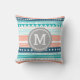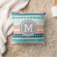 Bleu turquoise chic et moderne d'aqua de turquoise, bleu marine orange rose de pêche, gris, et carreau décoratif de monogramme fait sur commande tribal de motif de blanc. Entièrement personnalisable, ajoutez votre propre initiale pour un article à la maison véritablement unique de décor.