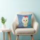 Hibou somnolent mignon avec un casquette de Père Noël devant un bleu d'aquarelle/arrière - plan d'aqua. La couleur sur le dos du coussin peut être facilement customisée.