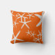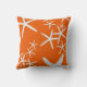 Coussin avec un motif en étoile de mer blanche. Orange kaki vif avec une dispersion d'étoiles de mer de toutes tailles. Choisissez un tissu selon vos besoins pour une utilisation intérieure ou extérieure. Illuminez une maison de plage / cottage au bord de la mer ou condo au bord de la mer avec cette décoration unique pour la maison. Ce design est également disponible dans une gamme de couleurs.