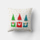 Coussin décoratif Gnomes de Noël mignons & étoiles dorées sur fond blanc.