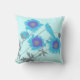 Un coussin graphique poppy bleu islandais élégant et unique inspiré et stylisé. Conçu par Sarah Trett. Aura fière allure dans une chambre ou un salon d'été.