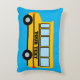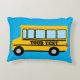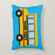 Coussin décoratif personnalisé pour chambre d'enfant représentant un bus scolaire jaune avec nom ou texte. Idéal pour garçon ou fille. Bus scolaire américain classique.