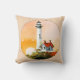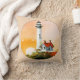 Joli coussin décoratif représentant un phare au coucher du soleil en aquarelle circulaire sur fond neutre