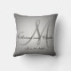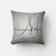 Carreau décoré d'un monogramme personnalisé avec les noms et la date de mariage de jeunes mariés. Fait un grand cadeau pour nouvellement l'épouse. Vous pouvez customiser les textes. Elke Clarke© pour MonogramGallery chez Zazzle. Gris et noir. Grand pour votre chambre à coucher, chaise préférée, comme décor d'amusement dans votre chambre familiale ou addition décorative formelle à votre salon comme souvenir de mariage.