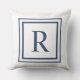 Coussin Deep Navy And White Square Border Monogram