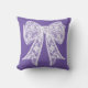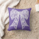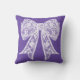 Arc blanc en dentelle sur violet. Couleur arrière - plan personnalisable. Ce design s'adapte à la taille moyenne et grande du coussin.