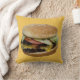 Photo d'un délicieux cheeseburger sur arrière - plan jaune personnalisable. Dos du coussin correspondant jaune personnalisable.