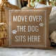 Déplacez-Vous Sur Le Chien Assis Ici Drôle Animateur Jetez L'Oreiller. Ce coussin animal est agrémenté d'empreintes de pattes et d'une mignonne citation. Personnalisez ce design personnalisé avec votre propre devis ou texte.