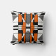 Des formes et des lignes géométriques en orange foncé, gris, noir et blanc se combinent pour créer un motif moderne, symétrique, semblable à un carreau du milieu du siècle (également d'influence méditerranéenne). Un aspect à la fois poli et exotique, une sorte de motif de mosaïque. Il s'agit d'un style vif et sophistiqué, qui met en valeur une qualité chic, polie et classe pour le salon, la chambre, l'espace de travail, la terrasse ou le patio. Il offre également un sentiment de chaleur, une ambiance détendue et paisible pour votre espace personnel, un endroit pour se retirer et contempler tout en étant à l'écart du monde animé de tous les jours. Il y a beaucoup de potentiel décoratif dans cette pièce d'accent, qui s'intègre avec un grand nombre de styles, du rétro/vintage au ranch rustique en passant par le loft urbain moderne ou l'élévation.