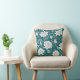 Motif floral oriental blanc sur arrière - plan turquoise jeter oreiller.