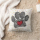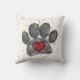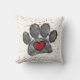 Empreinte de patte de chien et aquarelle du coeur en rouge, noir et gris. Peindre l'arrière - plan de plaque. Des oreillers à lancer personnalisés. Idée cadeau pour les amoureux de les chiens.