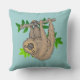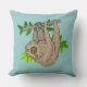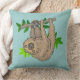 Un joli dessin d'un paresseux brun accroché à une branche avec des feuilles, accroché à l'envers. Arrière - plan vert.
