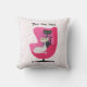 Cet oreiller de lancer a deux chats sophistiqués, un noir et un blanc dans un style du milieu du siècle assis dans une chaise rose vif portant des colliers en diamant sur un arrière - plan blanc avec des points roses. Customisez votre texte avec le modèle à l'avant et à l'arrière.