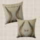 Deux hérons en bois patinés se font face d'un côté et se font face de l'autre, à l'envers de ces coussins à thème côtiers. Le design est basé sur une sculpture en bois vieilli d'un oiseau de mer. Personnalisez ces coussins couleur sable beige et teintée neutre avec Initiales ou Noms. Ils ont un attrait naturel rustique idéal pour un cabine au bord du lac, un chalet de bord de mer ou une maison de plage. Cette image est une photographie d'art originale de JLW_PHOTOGRAPHY.