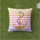 Coussin D'extérieur Ancrage or arc-en-ciel, bandes blanches nautiques