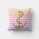 Ancrage parties scintillant or arc-en-ciel et bandes blanches pillow nautique. L'élément principal de ce design nautique d'été est l'ancre dorée et les rayures.