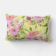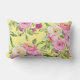 Des roses d'aquarelle luxuriants dans les tons rose, rouge, pêche et crème fleurissent sur un arrière - plan jaune citron sur cet oreiller féminin.