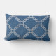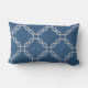 Il s'agit d'un coussin lombaire de qualité extérieure bleu avec un design en treillis blanc. REMARQUE : Le coussin est en tissu, mais le "tissage" dans le motif bleu fait partie de l'impression, pas dans le tissu coussin lui-même.