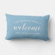 Simplement design lombaire jetez oreiller fonctionnalité "Welcome" texte de script moderne en blanc avec le texte voûté personnalisé qui peut être personnalisé avec le nom de famille monogramme et votre adresse de rue. Design recto verso sur l'avant et l'arrière inclus. Le texte blanc et l'arrière - plan bleu ciel / poudre peuvent être modifiés pour correspondre à votre décor maison.