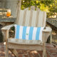 Coussin D'extérieur Bleu Cabana Stripe & Monogramme vert personnalisé