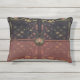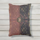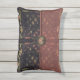 Vieux monde européen, exotique et sombre, avec une légère saveur de l'Orient, le beau motif de ZoeSPEAK, en couleurs naturelles sur ce Coussin Accent, a été fait d'une photographie originale de treillis en fer forgé et tissu imprimé tropical. Les frondes de palmiers et autres feuilles tropicaux, dans les tons verts pâles, en terre cuite et beige, reposent gracieusement sur un arrière - plan noir derrière le latticework. Le design est dans le style d'un sac d'embrayage ou d'un sac à main, avec une fermeture à bouton médaillon fleuri sur un arrière - plan foncé, un rabat en tissu lisse sur un tissu texturé bordeaux passé du même motif. Le rabat est bordé d'un ruban saumon rose grosgrain.