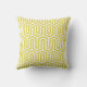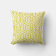 Un motif géométrique Art Déco, d'inspiration égyptienne en or moutarde / jaune foncé sur un coussin extérieur arrière - plan blanc