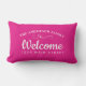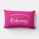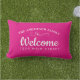 Elégant lombaire simple et élégant. Ce design présente un texte de script moderne en blanc "Welcome" sur arrière - plan rose chaud qui peut être modifié et personnalisé avec le monogramme de nom de famille et votre adresse de rue. Design recto verso sur l'avant et l'arrière inclus. Cette coussin lombaire rose vif conviendra parfaitement à votre décor maison.