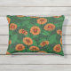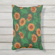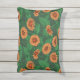 Coussin D'extérieur Fleurs Zinnia orange, feuilles verts sur vert fonc