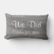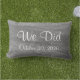 Ce coussin extérieur a un arrière - plan de granit gris foncé illustré et dit, "M. et Mme" avec le nouveau nom de famille marié sur le devant, et "Nous l'avons fait" avec la date mariage du couple nouvellement marié sur le dos, ce qui en fait un grand coussin d'accent pour la table d'amour mariage extérieur, et le pont ou patio des jeunes mariés.