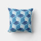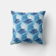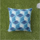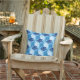 Coussin extérieur dans un kimono japonais classique motif de grues stylisées, arrangé dans un motif d'hexagones, en bleu marine / indigo, bleu moyen et blanc, sur un arrière - plan bleu ciel clair