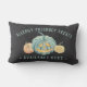 Laissez les astuces ou les traiteurs allergiques savoir que votre maison est une étape incontournable avec ce coussin porche extérieur sucré. Design propose un citrouille Jack-o'-lantern turquoise souriant flanqué de petites gourdes, avec "friandises allergiques disponibles ici" en lettres turquoises.