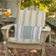 Ce coussin lombaire extérieur présente des rayures verticales de largeurs variées en vert sauge, rose gris et blanc clair et foncé. Un motif d'été idéal pour patio, terrasse ou véranda.