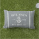 Ajoutez une touche personnalisée cool à votre bateau de pêche, voilier, yacht ou bateau domestique avec ce coussin personnalisé. La conception nautique rustique comprend votre nom de bateau, le registre du navire et l'année établie en lettres blanches, avec une illustration d'ancre et une bande de corde détaillant sur un arrière - plan bleu ardoise souple.