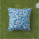 Coussin D'extérieur Oiseau et grenade Art Nouveau, Bleu de Cobalt