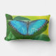Papillon bleu Morpho contre un arrière - plan de feuillage vert. Un coussin mignon pour vous ou en cadeau.