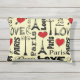 Paris design de texte pour la Saint-Valentin aux formes coeur rouge, Tour Eiffel et lampes de rue décoration arrière - plan jaune