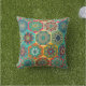 Coussin D'extérieur patchwork vintage avec éléments de mandala fleuris